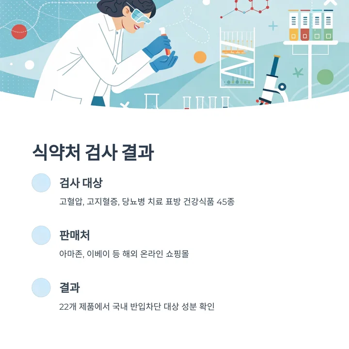 식약처는 고혈압·당뇨병 등 만성질환 관련 해외직구 제품 22종에 대해 국내 반입 차단 조치를 내렸습니다.