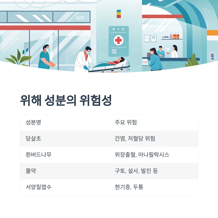 | 흰버드나무 | 위장출혈, 아나필락시스 위험 |