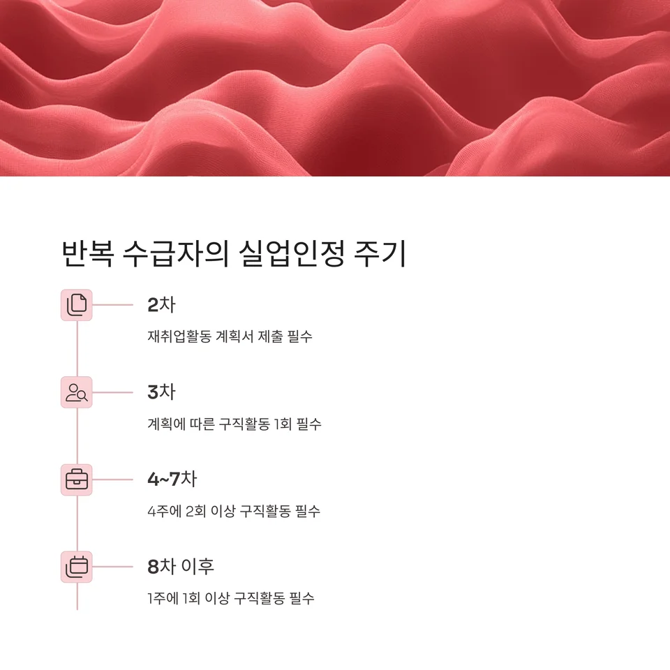 | 반복 수급자 | 전 차수 대면 실업인정 필수 (2025년부터 강화) |