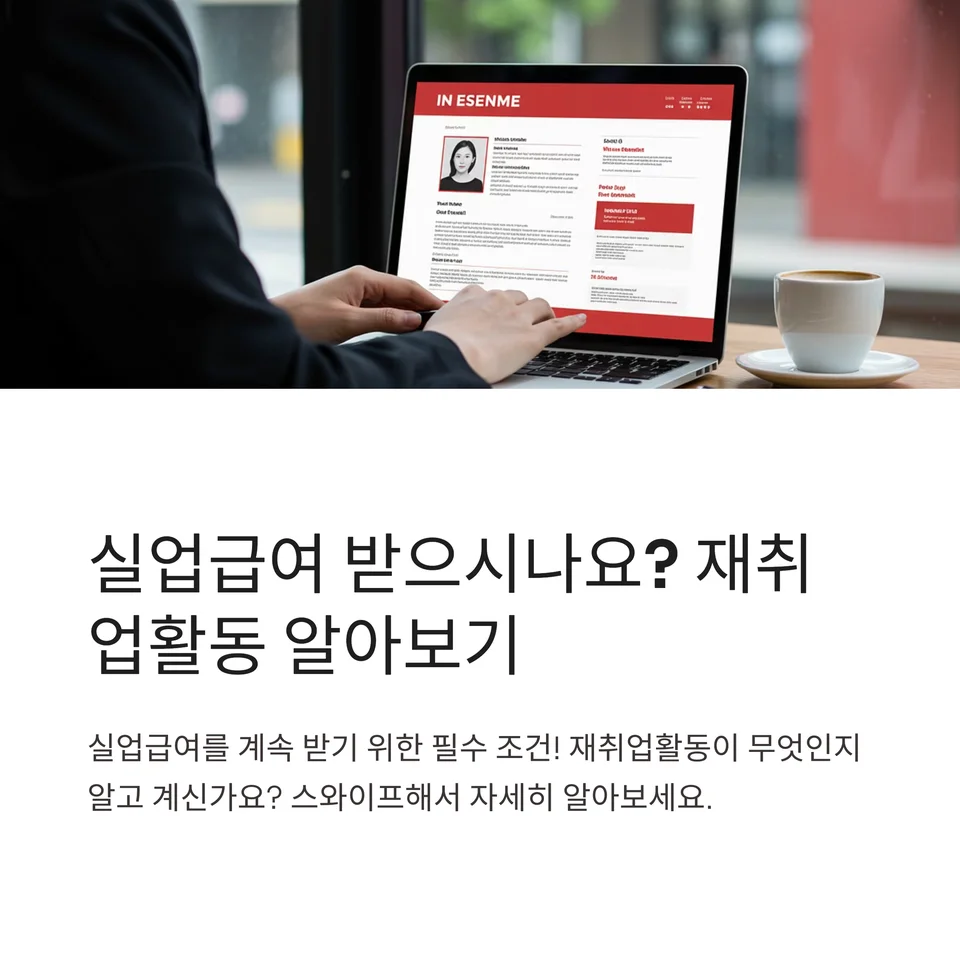 재취업활동이란 일자리를 구하기 위해 실제로 노력한 모든 활동을 말합니다. 이 활동은 실업급여를 계속 받기 위해 필수적으로 해야 하는 조건입니다.