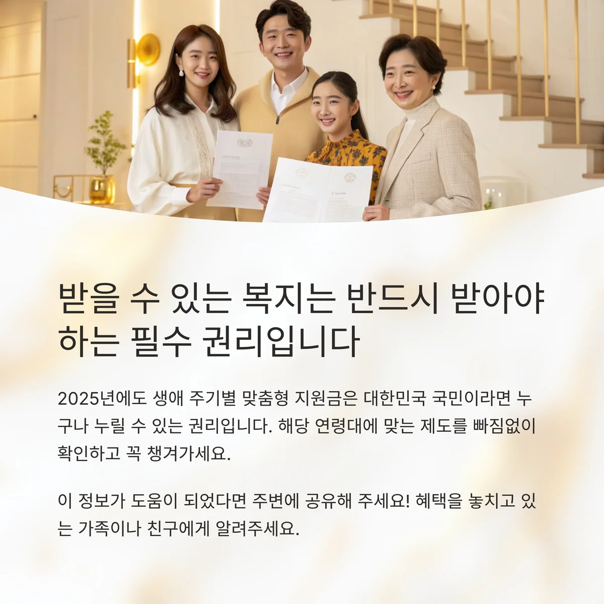 2025년에도 생애 주기별 맞춤형 지원금은 대한민국 국민이라면 누구나 누릴 수 있는 권리입니다.