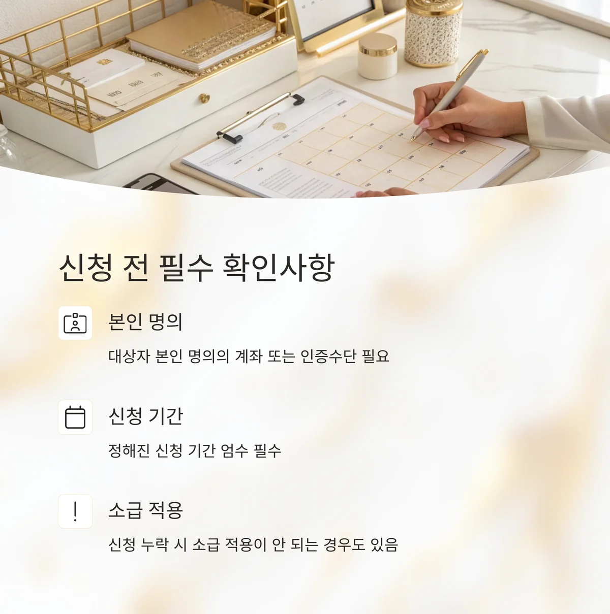 - 정해진 신청 기간을 반드시 준수해야 하며, 누락 시 소급 불가할 수 있음