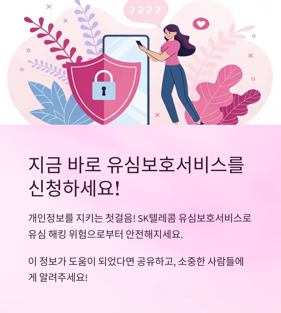 개인정보를 지키는 첫걸음! 지금 바로 SK텔레콤 유심보호서비스를 신청하고 유심 해킹 위험으로부터 안전해지세요.